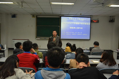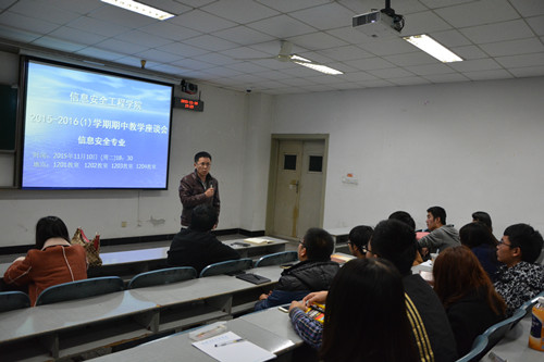 【本网讯】为进一步了解教学进程及效果,增强师生联系,信息安全工程学院于11月10日举行了“2015-2016(1)学期期中教学检查学生座谈会”。