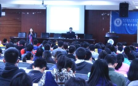 【本网讯】11月25日下午,大气科学学院有幸邀请到四川省气象局陈云峰副局长为学院大一新生作主题为“气象史话”的气象科普讲座。大气科学学院党总支书记张小红,大气科学学院党总支副书记缪燕平,大一辅导员以及全体2015级新生出席了此次讲座,会议由张小红书记主持。学术报告厅内座无虚席。