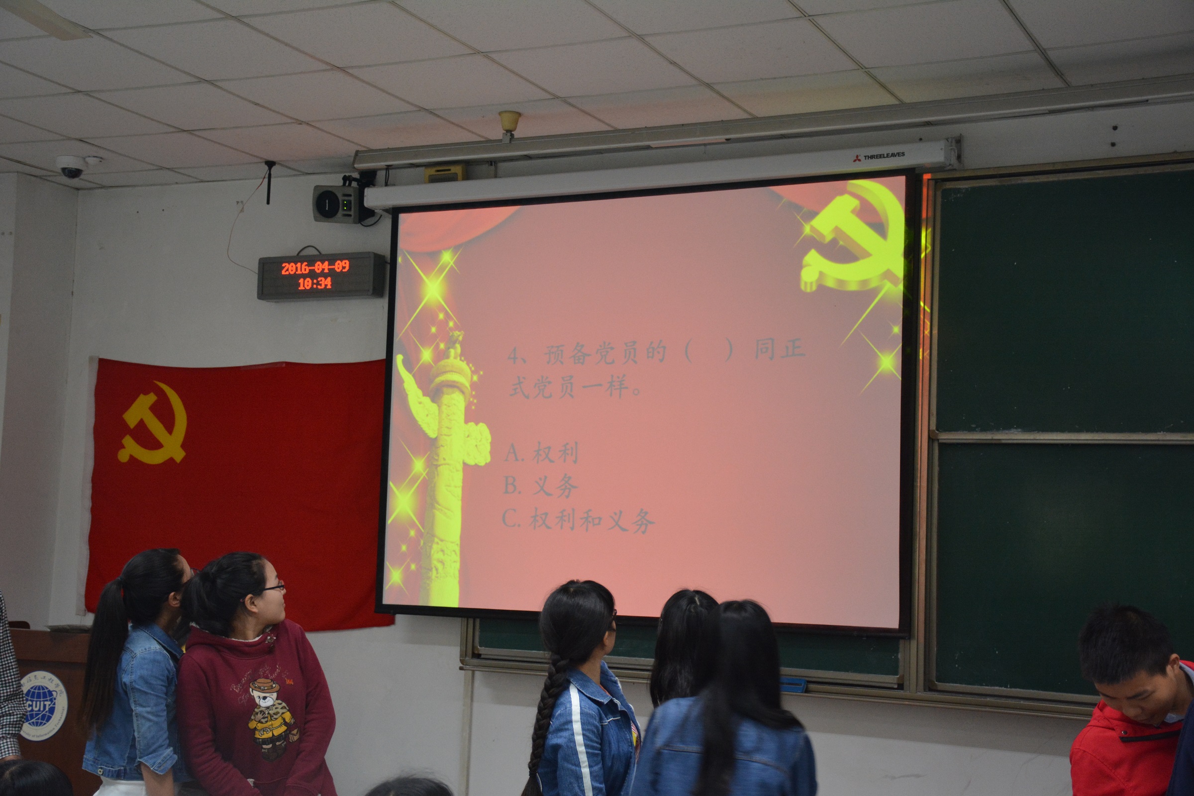 【本网讯】4月9日,资源环境学院学生党支部“支部活动月”在第一教学楼1101教室拉开帷幕。整个活动持续近8小时,分为“知识竞赛”、“文体活动”和“总结颁奖”三部分,全体党员及入党积极分子参加,学生党支部书记王燕老师全程参与并指导。