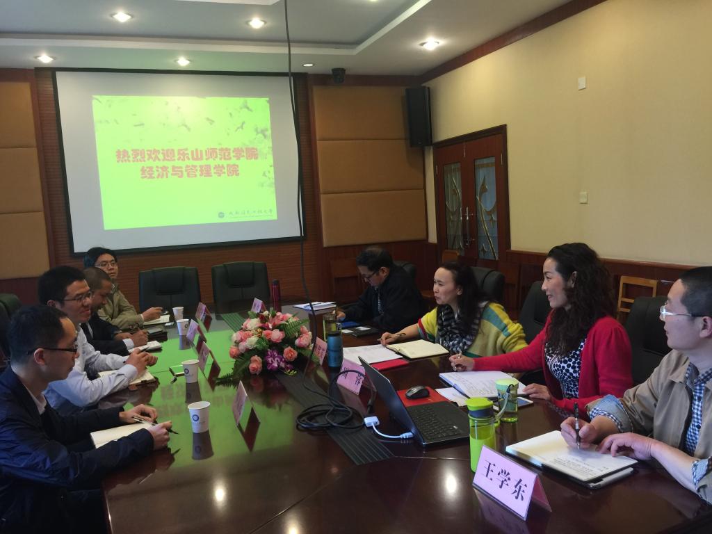 【本网讯】4月14日,商学院院长曹邦英,副院长李来儿在会议室会见了乐山师范学院经济与管理学院院长龚晓等一行。