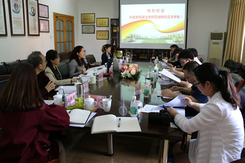 5月9日上午,许昌学院法政学院副院长柯彪、行政管理教研室主任张磊等一行六人来我校管理学院交流访问。管理学院院长黄萍、副院长李贵卿以及行政管理、劳动与社会保障、人力资源管理专业主任、实验室主任接待了客人,在龙泉第二行政楼三会议室进行了交流座谈。