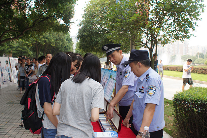 活动开展了“盗窃防范、人身安全、求职安全、交通安全、交通标识、文明离校”等方面校园安全主题展,并向师生发放《校园安全保障体系及服务指南》、《警示》报等资料。通过禁毒宣传展板、毒品仿真品和吸毒工具的展示,以及禁毒大队民警深入浅出的讲解,参加活动的师生受到了一次深刻的禁毒法制教育。民警强调,看似毒品远离我们的生活,但在校大学生出于好奇或被动染毒,吸食毒品现象日益严重,加强对大学生的禁毒法制宣传教育迫在眉睫。