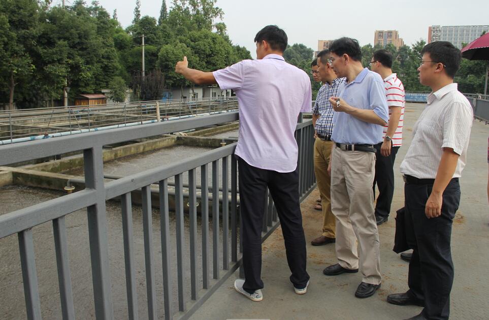 考察组现场察看了成信家园后区两条流经小区的主要泄洪渠,目前沟渠在小区围墙边已被专用匝门隔断,污水直接流向凉水井污水处理站净水池,不再排到我校成信家园小区管道。考察组还进入到成信家园,实地观察了泄洪渠流向江安河的入水口,目前已几乎无污水直接排入江安河,空气中也无明显浑浊气味。最后,考察组一行来到凉水井污水站进行考察。污水站工作人员带领大家参观并讲解了污水处理过程及原理。通过对生态系统的观察及进、出口水质的对比,考察组充分了解到目前污水处理情况,对学校领导、武侯区人大代表、相关部门以及地方政府、环保企业对此项工作做出的努力表示赞许和感谢。