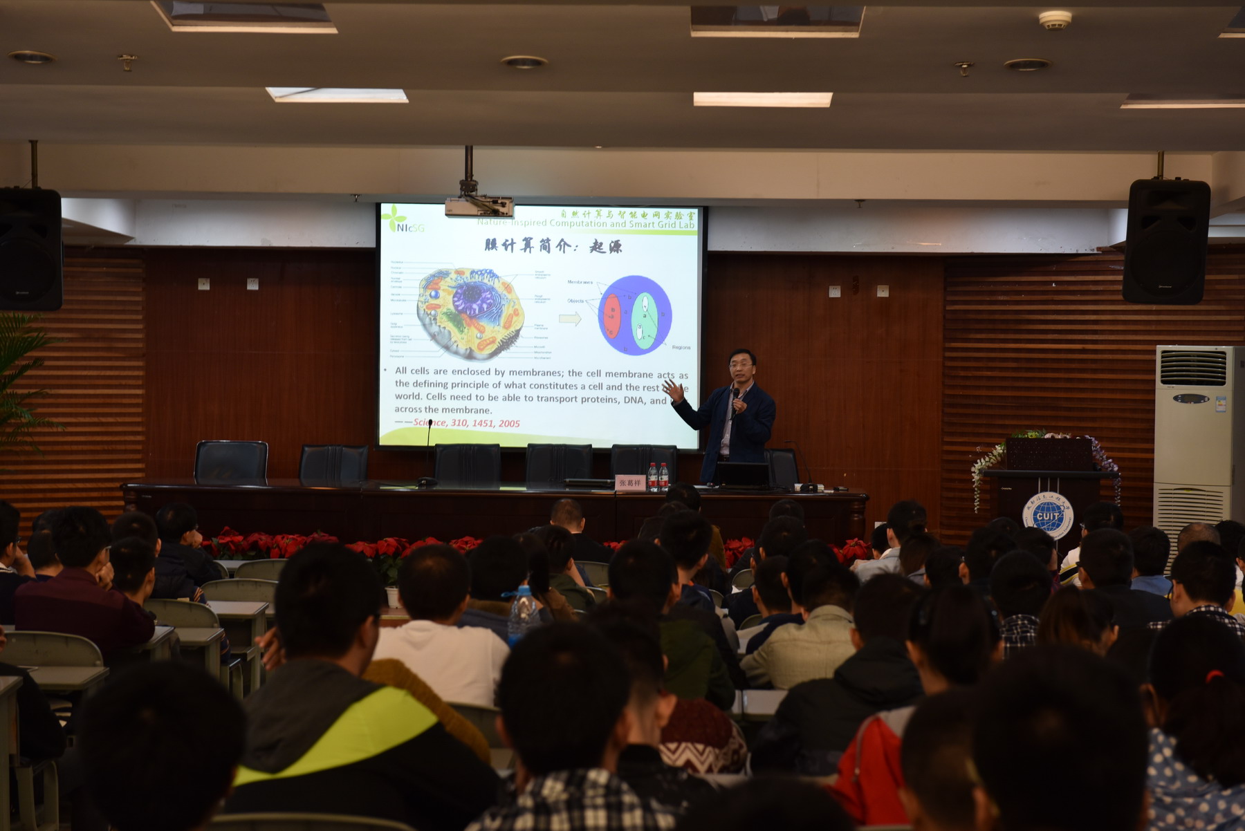 【本网讯】10月27日上午,国际膜计算学会创会主席、西南交通大学教授、机器人与智能系统国际联合研究中心特聘教授张葛祥博士在学术报告厅举办了题为“自然计算新分支-膜计算”的学术讲座。本次讲座由控制工程学院副院长蒋涛教授主持,会议吸引了控制工程学院师生三百余人参加。