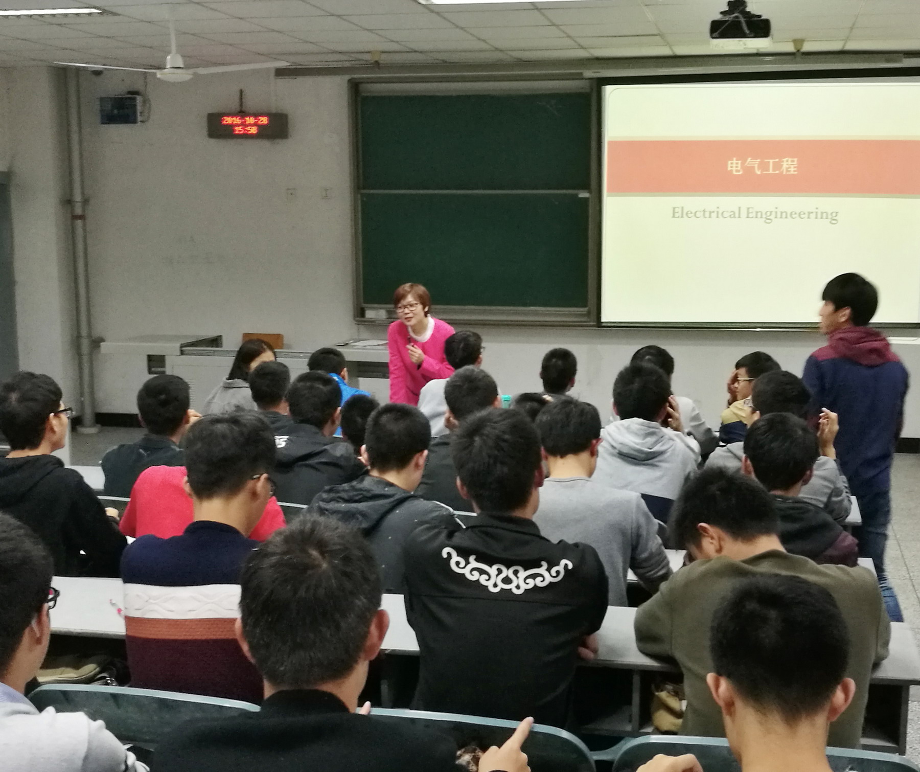 讲座伊始,蒋秀洁与同学们进行了亲密的交流与互动。她询问了同学们对于电气这个专业的看法并就毕业后的就业方向展开了详细的讨论。针对每一个有疑问的同学,蒋秀洁都耐心地为他们做出了解答。在讲座过程中,蒋秀洁凭着自己在电气专业这一领域积累的经验和丰富的阅历讲述了电气工程的发展史和当今世界各国对于这一专业的重视程度,同时也深刻具体地陈述了我们国家当前在这一专业这一领域的具体情况。