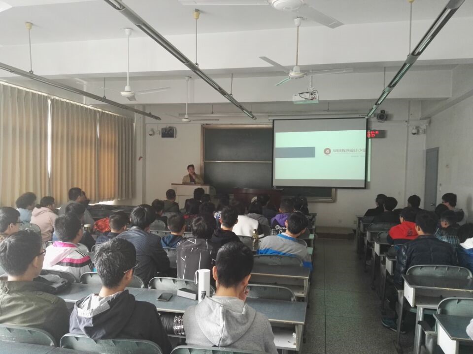 陈海宁对计算机学院创新实验室做了简要介绍。各项目负责人依次向在场同学阐述了各自负责的有关内容,此次宣讲会总共涉及六个创新项目,包括互动媒体、虚拟现实、嵌入式、Web程序设计、高性能计算以及移动应用开发。宣讲会上老师们从项目开发语言、开发所需能力以及项目配套设备等多个方面对项目进行详细叙述,并鼓励在场同学踊跃报名,会议现场气氛热烈,掌声雷动,会议结束之后,同学们积极响应老师号召,报名参加自己心仪的项目。
