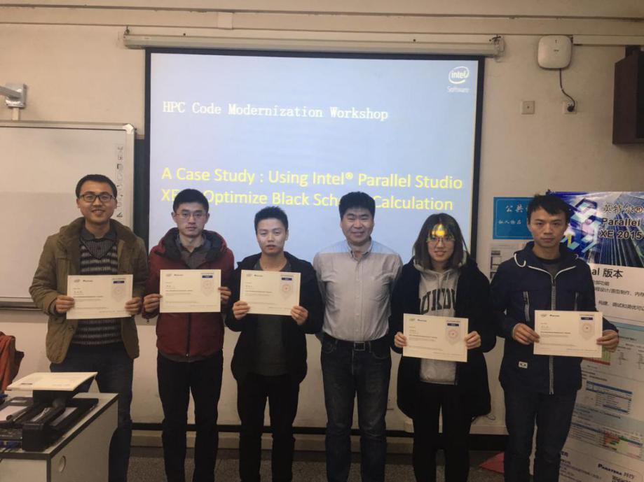 实战环节,黄新平带领大家分别进行了OpenMP编程实战、MPI编程实战、KNL编程实战、Black Scholes调优实战等多个极具实用价值的实战演练。两天的课程结束之后,黄新平为参加培训师生颁发了英特尔并行编程技能证书。