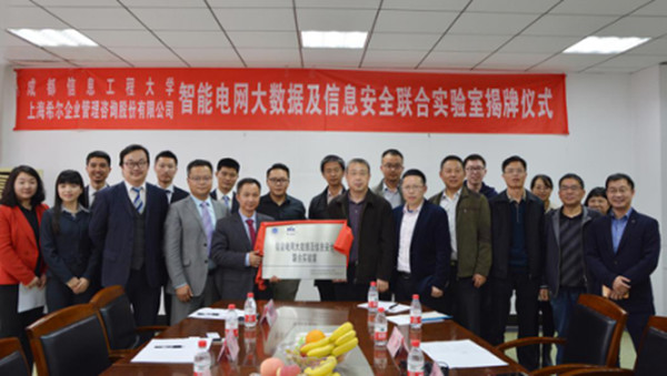 【本网讯】4月10日下午,三亿网-上海希尔企业管理咨询股份有限公司“智能电网大数据及信息安全联合实验室”成立暨揭牌仪式在三会议室成功举行。我校网络空间安全学院李飞院长、陈麟书记、张仕斌副院长、以及许鸿涛、宋海权、万国根、昌燕、闫丽丽等相关老师,上海希尔企业咨询管理股份有限公司黄家才总裁、谢奕副总裁、易智总监、成都分公司杨振总经理、研发部刘锦程经理、销售部周宇经理、项目实施部方鹏经理,广州科腾信息技术有限公司事业部曹熙总经理,广州科腾信息技术有限公司销售部叶小健经理、360企业安全集团赵强大客户经理参加了仪式。李飞与黄家才为智能电网大数据及信息安全联合实验室揭牌。