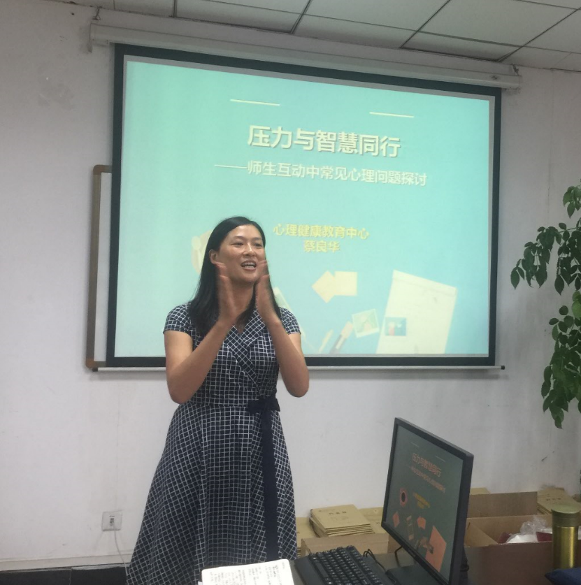会后,学院邀请学校心理健康教育中心主任蔡良华为我院教师做了题为“压力与智慧同行——师生互动中常见心理问题探讨”的专题讲座,对教师教学中遇到的学生心理问题进行了探讨。她用互动式、案例式的方式呈现了师生互动中遇到的困难,对心理问题为什么会发生、心理问题有哪些类型、心理健康与压力的关系、如何保持心理健康等方面进行了解释说明,分享了“一吸、二离、三宣泄”的解压方式。心理健康的话题引起了老师的共鸣,大家进行了充分的互动与交流,讲座为解决实际教学中师生沟通困难的问题提供了参考和帮助。