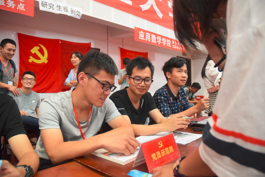 9月12日,学生党支部于学院招新处设置了党员示范岗,学生党员积极的向前来报到的学生介绍报到流程,协助各班班导完成新生报道登记等工作。在此期间,学院党总支书记刘绍全来到报道现场,指导党员的工作,为新生家长答疑解惑,并同在场党员交流工作与分享经验。