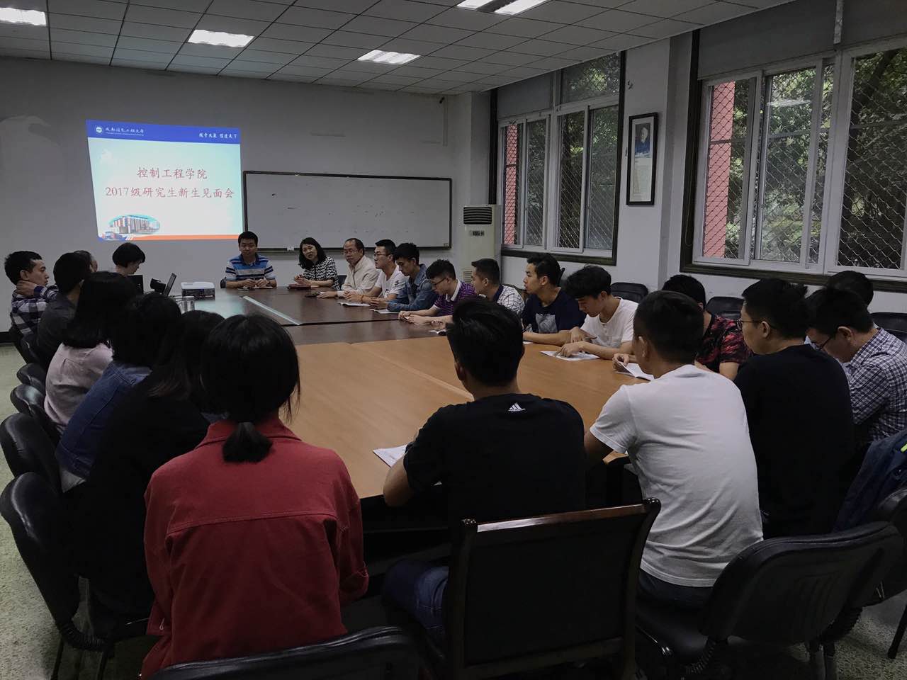 【本网讯】9月15日,控制工程学院在信息楼108会议室举行了2017级研究生新生见面会。见面会由学院党总支书记邓丽琴主持,副院长蒋涛、分管研究生工作副院长沈艳、部分研究生导师、研究生班主任、教学秘书及全体研究生新生参加了会议。