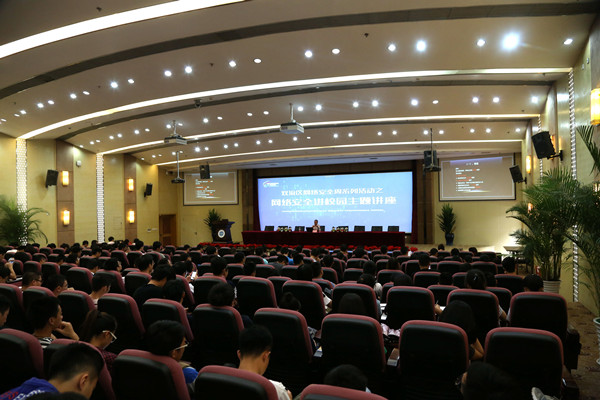 王海向同学们介绍了常见的几种网络诈骗方式,并列举了近几年来发生的社交网站个人信息泄露、重要信息文件被非法窃取以及不法分子进行网络诈骗等对隐私、财产安全造成了极大损失的恶性事件,希望同学们不做网络空间的受害者,加强防范意识和网络安全管理的意识。他特别强调了“校园贷”的相关规定,深刻剖析了“校园贷”带给大家的恶果,提醒同学们对“校园贷”保持高度的警惕。