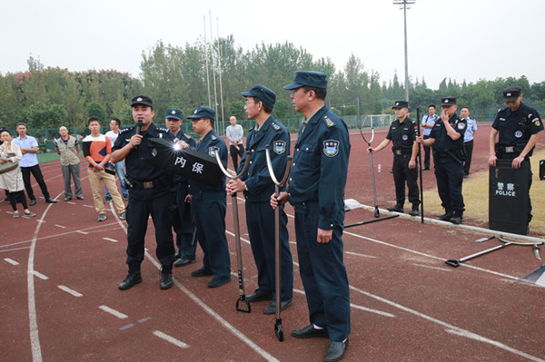 【本网讯】为进一步强化校园及周边安全,提升安保人员业务素养、应急防范能力和安保工作质量,确保辖区安全稳定工作的顺利开展。9月30日上午,由成都市双流区公安分局巡警大队、机场路派出所组织的辖区安保力量业务技能培训会在我校航空港校区第二田径场开展。西南民族大学、机场路派出所及辖区内物业公司、商场、中小幼儿园、寺圣社区、常乐社区及我校等安保负责人及队员,学校学生代表参加培训会。