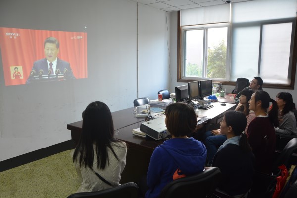 【本网讯】中国共产党第十九次全国代表大会于18日上午9时在北京人民大会堂开幕。网络空间安全学院的师生分别聚集在办公室、实验室、寝室观看了开幕式的直播。