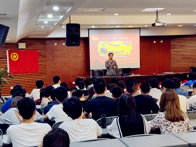 【本网讯】4月20日晚,由校团委组织的“学习习近平总书记系列重要讲话精神”为主题的团课在学术报告厅召开。本次团课邀请到全国团校优秀教师、成都市团校教学科研部主任汤继平担任主讲教师,团校“青年马克思主义者培养工程”第十二期大学生骨干培训班全体学员、校级团学组织主要学生干部参加了此次团课。