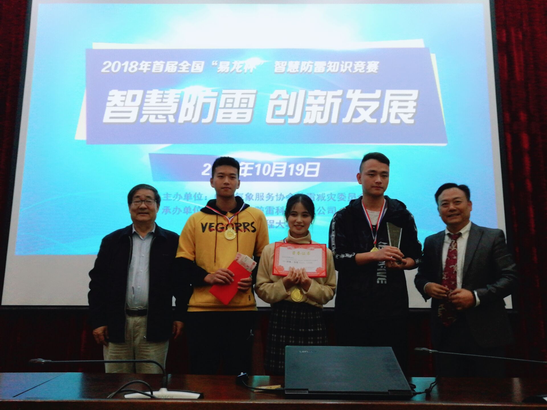【本网讯】10月19日,由中国气象服务协会主办的全国首届“易龙杯”智慧防雷知识竞赛在南京信息工程大学举行,我校电子工程学院两支学生队伍分别获得1个“一等奖”和1个“纪念奖”。