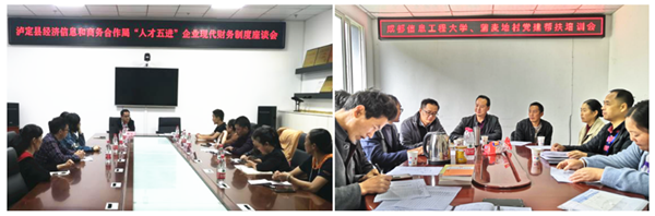 企业财务管理座谈现场(左)、党建共建指导培训会(右)