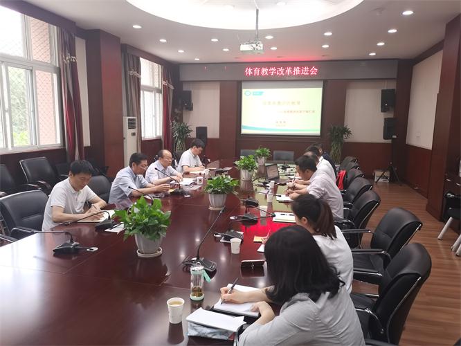 【本网讯】5月10日下午,为落实四川省教育厅关于《四川省教育系统体育美育卫生与国防教育工作重点》的部署安排,学校在行政楼第六会议室召开了体育教学改革推进会。学校党委副书记马洪江,副校长何建新,教务处、后勤基建处、体育部相关负责人参加会议。何建新主持会议。