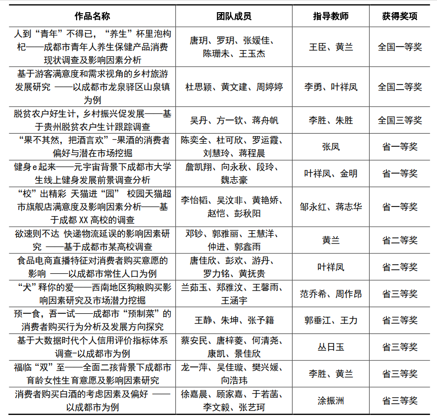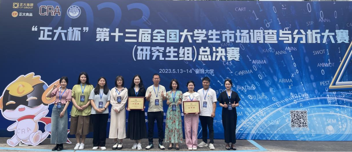 【本网讯】5月13日至14日,“正大杯”第十三届全国大学生市场调查与分析大赛研究生组总决赛在南昌大学举行。本次总决赛由中国商业统计学会主办,南昌大学承办。历经七个月的时间,经过企业赛、校赛和省赛的层层选拔,共有97所学校,151支团队晋级研究生组全国总决赛。我校统计学院入围本次总决赛现场答辩环节的2支参赛队表现优异,分别斩获全国一等奖1项、全国二等奖1项。除此以外我校还获得全国三等奖1项;省一、二、三等奖分别为3、2、5项,取得了我校研究生组参加该赛事以来的最好成绩。获奖名单如下: