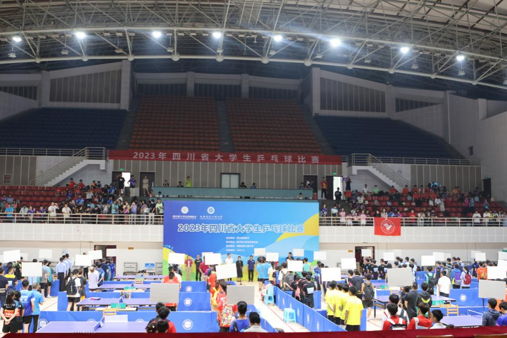 【本网讯】由四川省教育厅主办,四川省大学生体育协会执行,我校承办的2023年四川省大学生乒乓球比赛,于6月9日在我校航空港校区体育馆拉开帷幕,比赛将于6月11日结束。四川省教育厅体卫艺处处长赖英莉,省纪委监委驻校纪检监察组组长、学校党委副书记、纪委书记雷超,四川省大学生体育协会副会长文烨,四川省大学生体育协会竞训部部长吕志刚,本届比赛监督原乒乓球国家队领队、四川省乒羽管理中心主任代天云,乒乓球奥运冠军、四川省乒协会副主席、西华大学乒乓球队总教练陈龙灿,比赛技术代表、乒乓球国际级裁判杜力平,比赛裁判长、西昌学院体育学院副院长郎朝春出席了开幕式。开幕式由我校体育部主任程艺主持。