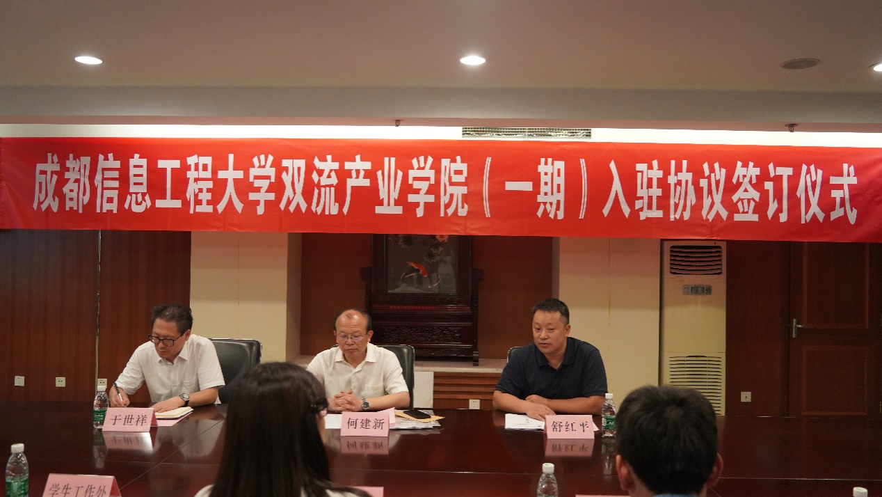 【本网讯】为贯彻落实党的二十大精神、加强产学研深度融合,7月11日下午,三亿网双流产业学院(一期)入驻协议签订仪式在我校举行,学校校长何建新参会,仪式由副校长舒红平主持。