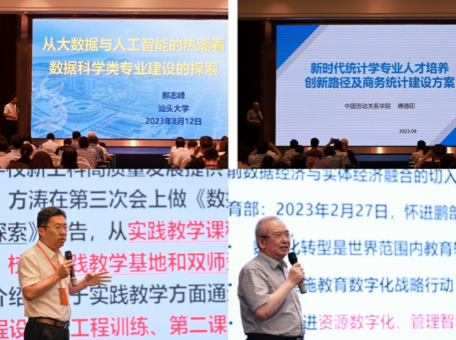 汕头大学校长郝志峰教授、中国劳动关系学院校长傅德印教授分别作了题为《从大数据与人工智能的热潮看数据科学类专业建设的探索》《新时代统计学专业人才培养创新路径及商务统计建设方案》的主题报告。北京交通大学于永光、福建师范大学陈晓平、南方医科大学欧春泉、南京医科大学易洪刚、中国药科大学言方荣、华东师范大学李艳分别作了专题报告。报告分别由教指委委员朱建平、史代敏、唐年胜、易东、李勇教授主持。
