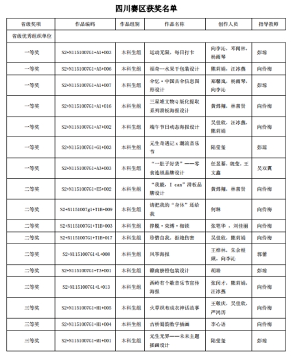 【本网讯】近日,第11届未来设计师·全国高校数字艺术设计大赛(NCDA)圆满落下帷幕,我校学子在本次大赛中喜获佳绩,荣获国家级一等奖1项、二等奖2项、三等奖3项;省级一等奖11项、二等奖13项、三等奖24项,吴双翼、田晓膺、向伶梅、禹然获得优秀指导教师称号。