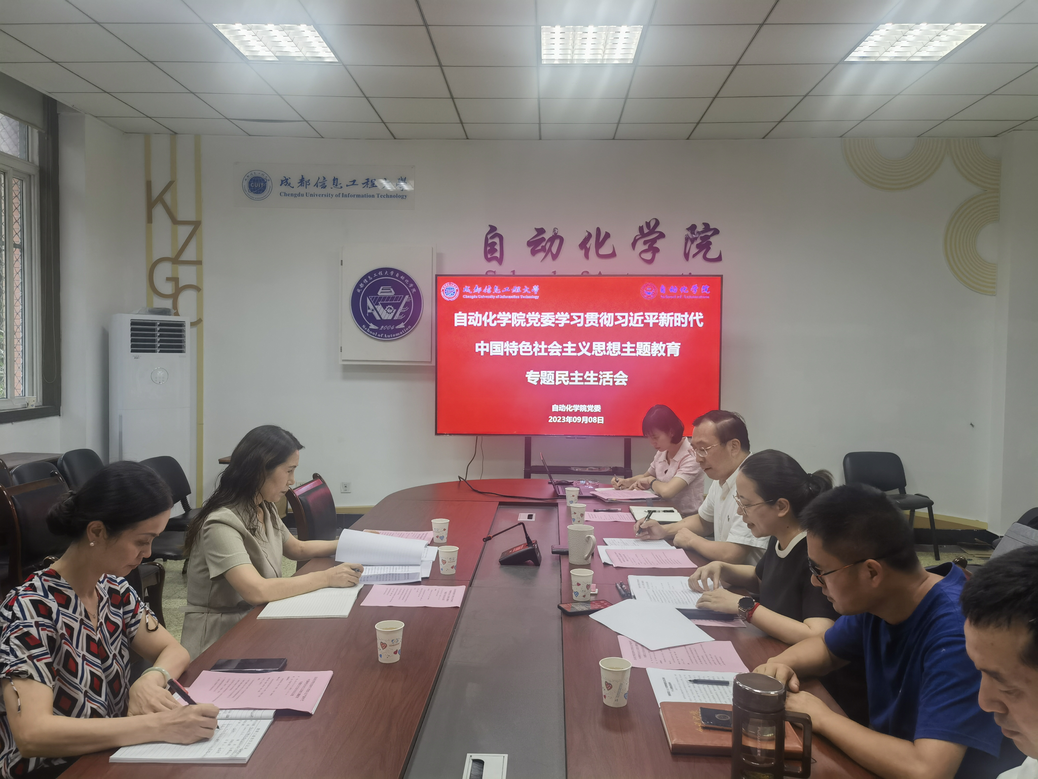 【本网讯】9月8日,自动化学院在信息楼104会议室召开学习贯彻习近平新时代中国特色社会主义思想主题教育专题民主生活会。学院处级党员领导干部参加了会议,学校督导组组长、党委常委、党委宣传部部长张小红,督导组成员姜林琳到会指导。学院处级党外干部和党委委员列席了民主生活会。会议由学院党委书记胡雪飞主持。