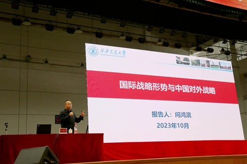 问鸿滨教授引经据典、语言生动,分别从国际战略形势、中国周边安全问题、中国对外总体战略三个方面进行了全面详细的讲授。他表示,当今世界正经历百年未有之大变局,国际局势波谲云诡,周边环境复杂敏感,有太多的不确定性,但不论国际形势如何变化,只要保持战略定力、战略自信、战略耐心,就能把维护国家安全的战略主动权牢牢把握在自己手中。