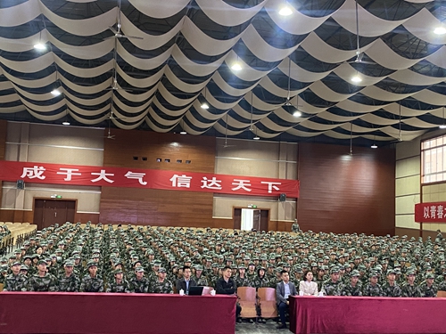 【本网讯】为全面贯彻党的教育方针、新时代军事战略方针和总体国家安全观,进一步做好学生军事理论课程教育工作,加强学生军事理论基础,弘扬爱国主义精神,10月12日,学校邀请西安交通大学人民武装部副部长问鸿滨教授、军事教研室王志朋老师到航空港、龙泉两校区为全体2023级本科生开展军事理论专题讲座,学校党委学生工作部相关工作人员和辅导员老师代表参加了讲座。