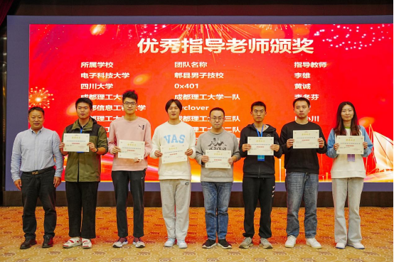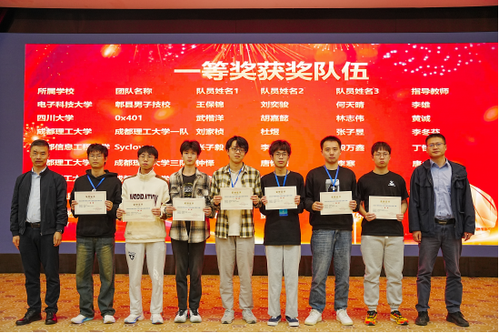 随后,学校网络空间安全学院院长周益民宣读本次大赛具体获奖情况。大赛经过精彩激烈的角逐,共产生一等奖8名(本科组6名、高职组2名),二等奖18名(本科组13名、高职组5名),三等奖26名(本科组19名、高职组7名),优秀指导老师8名。来自电子科技大学、四川大学、成都理工大学、三亿网、成都职业技术学院的8支队伍获得本次比赛的一等奖,来自成都大学、成都东软学院、西南石油大学、西华大学、成都工业职业技术学院、乐山职业技术学院等高校的18支队伍获得本次比赛的二等奖,来自四川传媒学院、西南交通大学、四川师范大学、西南民族大学、四川信息职业技术学院、绵阳职业技术学院等高校的26支队伍获得本次比赛的三等奖。