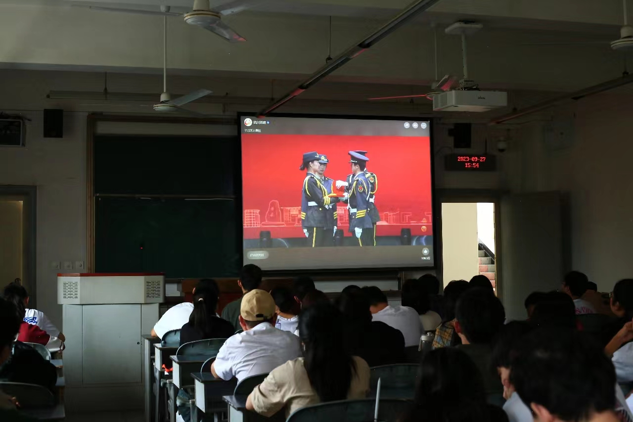 师生收看“传承红色基因•争当青年先锋”红色典型进高校第三批次宣讲现场