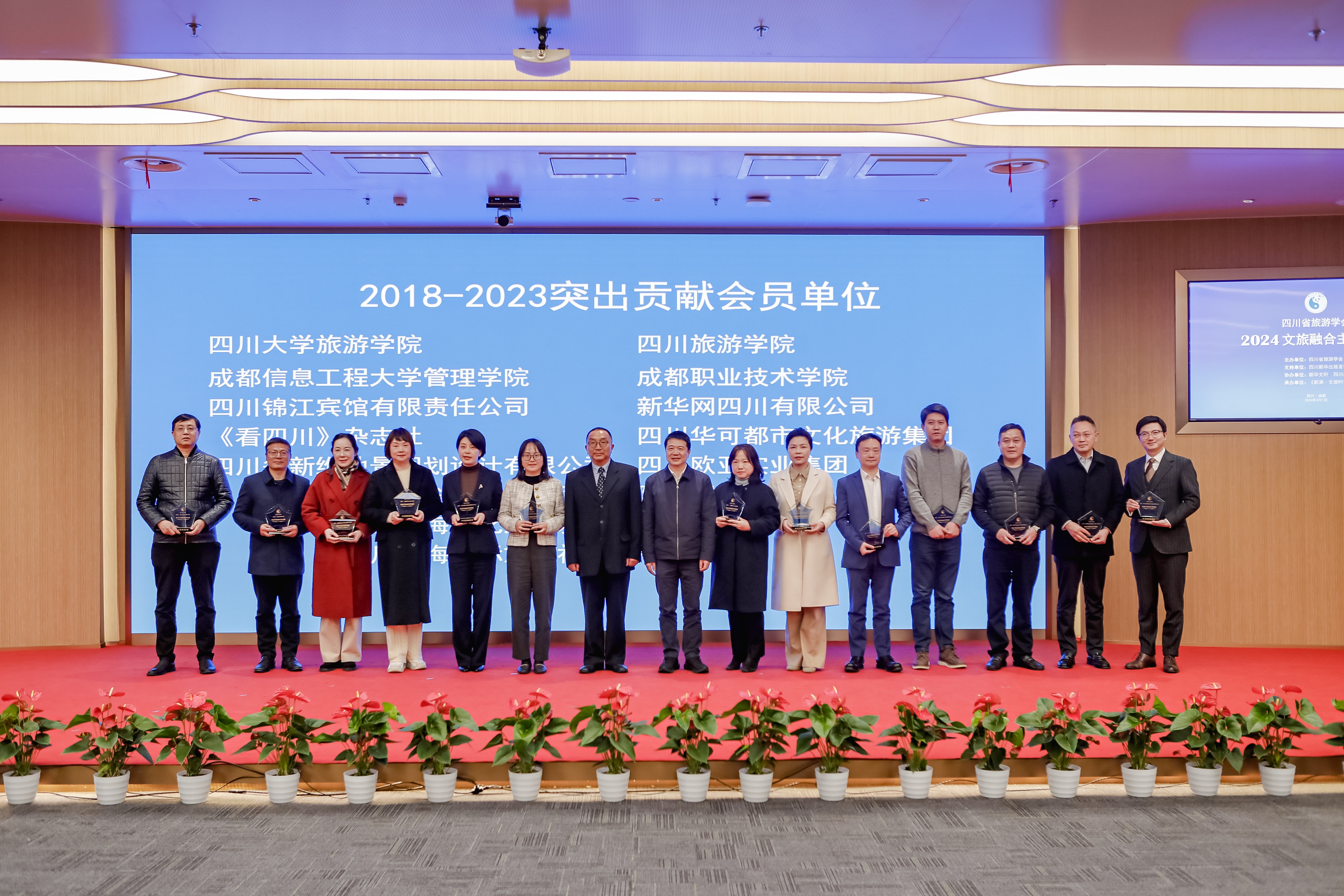 【本网讯】近日,四川省旅游学会“2024文旅融合主题年会”顺利召开,四川省人力资源和社会保障厅党组书记、厅长胡斌,省文化和旅游厅副厅长宋秋,省政府参事室主任崔志伟,省旅游学会会长陈加林,新华文轩出版传媒股份有限公司党委委员、副总经理邹健到会并致辞。省级相关部门领导、学会会长、副会长代表、秘书长、常务理事代表、理事代表、会员代表、获奖单位代表参加会议。会上,管理学院获得“2018-2023年度突出贡献会员单位”荣誉称号!