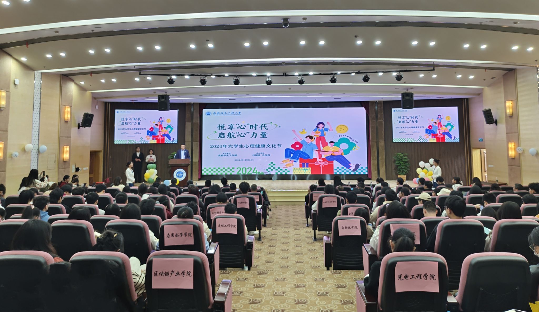 【本网讯】3月25日,学校2024年大学生心理健康文化节启动仪式在航空港校区国际会议厅举行,本次活动主题为“悦享‘心’时代·启航‘心’力量”。学校副校长吴锡,四川省心理学会应用心理专委会主任委员杨雪梅,学校党委宣传部、党委学生工作部、教务处、后勤基建处、校团委、体育部负责人,各学院党委书记、副书记和师生代表参加启动仪式。