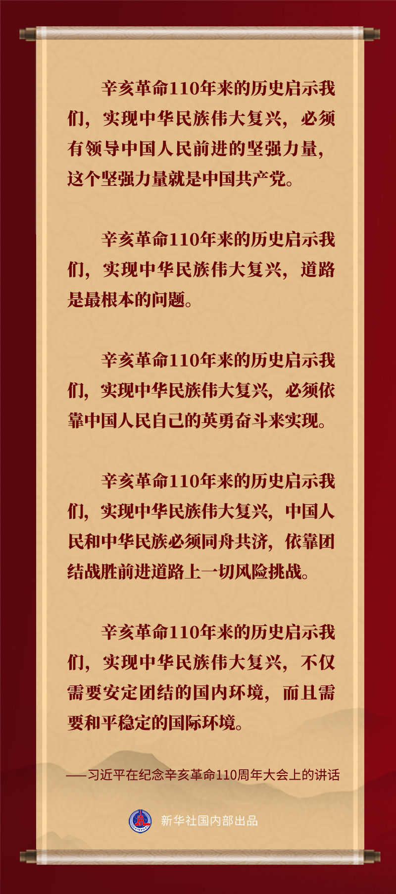 习近平在纪念辛亥革命110周年大会上的讲话金句