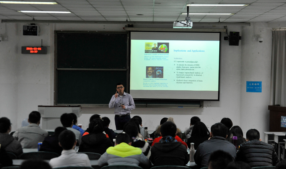 吴锡为全体师生作了题为《看见你的灵魂——大脑神经计算成像研究进展》的学术讲座。吴锡简单为我们介绍了他的求学经历,以及此次讲座主题所涉及的三项重要技术,即图像分析、人工智能、高性能计算。同时,吴锡教授谆谆教导在座的学生在研究生或本科阶段应该学习好一门专业技术并在某一应用领域深入学习。