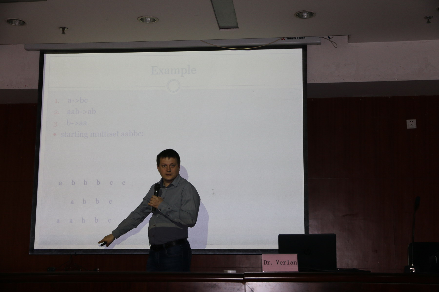 【本网讯】4月13日上午,应控制工程学院机器人与智能系统国际联合研究院的邀请,法国巴黎大学Verlan博士在学术报告厅举办了题为“Thoughts on Membrane Computing and Multiset Rewriting”的学术讲座。本次讲座由控制工程学院院长蒋涛教授主持,控制工程学院百余名师生参加了讲座。