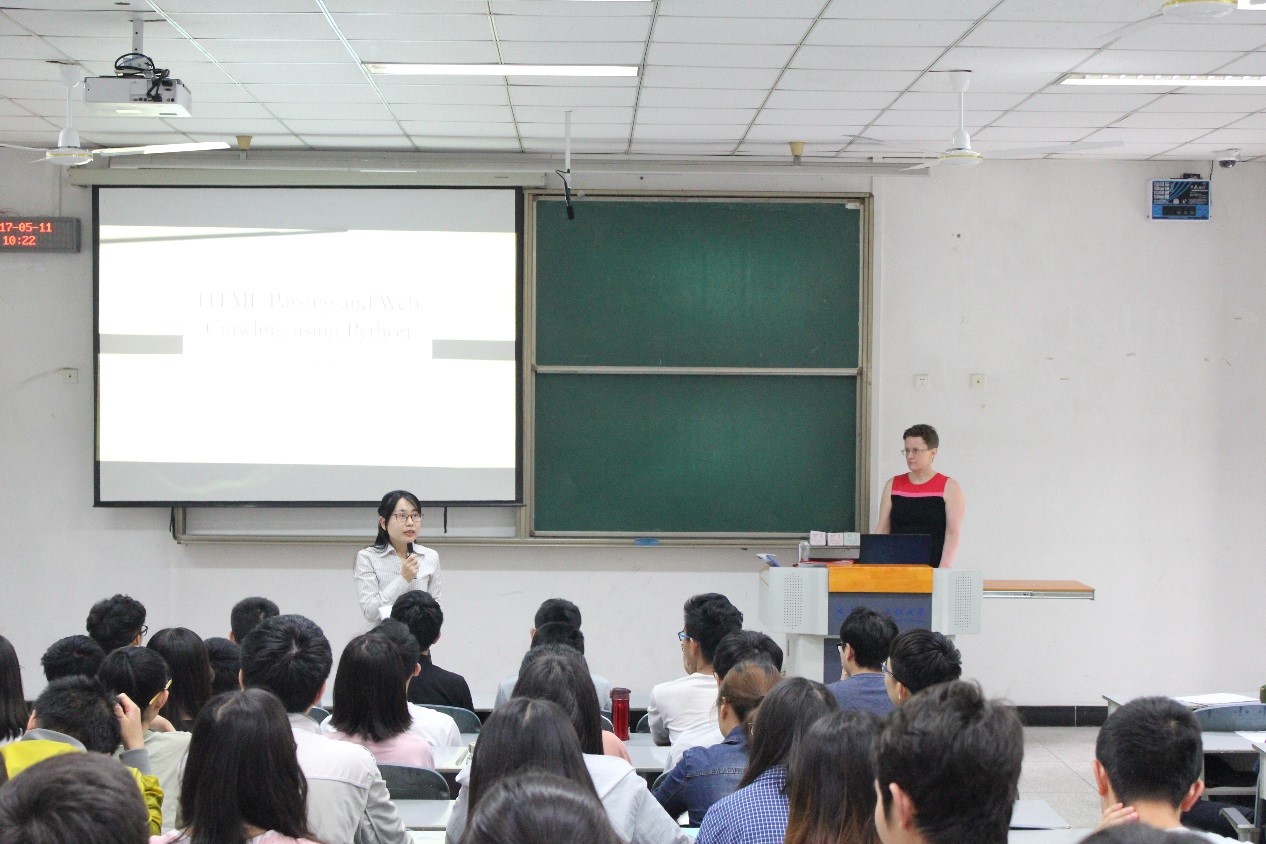 【本网讯】5月11日上午,应计算机学院邀请,美国德保罗大学(DePaul University,DPU)副教授、ACM SIGCSE主席Amber Settle在1101教室作了题为《HTML Pasing and Web Crawling using Python 》的技术讲座。本次讲座由计算机学院邹茂扬老师主持,计算机学院部分师生参加了讲座。