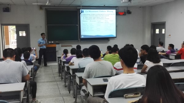 【本网讯】6月20日下午,电子科技大学张东祥教授应网络空间安全学院邀请,在1107教室作了一次题为《A Genral and Parallel Platform for Mining Co-Movement Patterns over Large-scale Trajectories》的学术报告,网络空间安全学院部分师生参加了此次学术交流。报告由学院乔少杰教授主持。