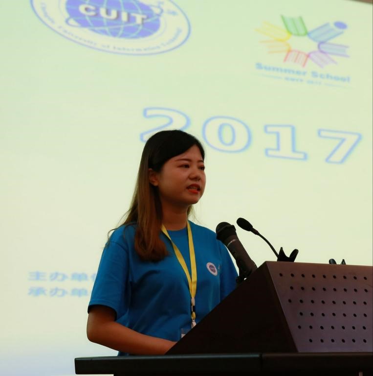 物流学院电子商务专业学生邹睿代表全体参加暑假国际周的学生在开幕上进行了发言。她感谢学校为学生们精心安排了这次为期一周的Summer School。她代表全体参加暑假国际周的学生欢迎远道而来的外教们,希望他们拥有愉快而难忘的中国之行。