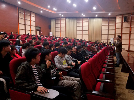 【本网讯】11月14日,广州名动漫资深影视总监杨日晶先生应文化艺术学院邀请来我校作了题为《数字影视特效设计与动画合成》的学术报告。文化艺术学院视觉传达设计专业200余名师生聆听了讲座。