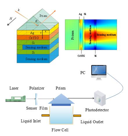 文章提出了一种基于磁光光学Tamm态的新型磁光波导结构用于检测流体的折射率。该结构的分布布拉格反射器(DBR)是由流体传感层和介质层交替形成,这样既减少了DBR层数,又增大了传感灵敏度。当气体折射率在1.0000~1.0006的范围内变化时,该磁光波导的传感灵敏度可达1224.21/RIU。同时,文章还设计了该波导结构用于检测空气和NaCl溶液的实验方案,有望被广泛应用于微测量领域和生化传感领域。