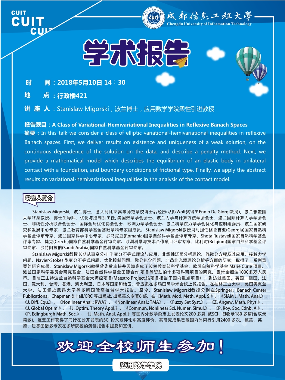 【学术预告】A Class of Variational-Hemivariational Inequalities in Reflexive Banach Spaces
