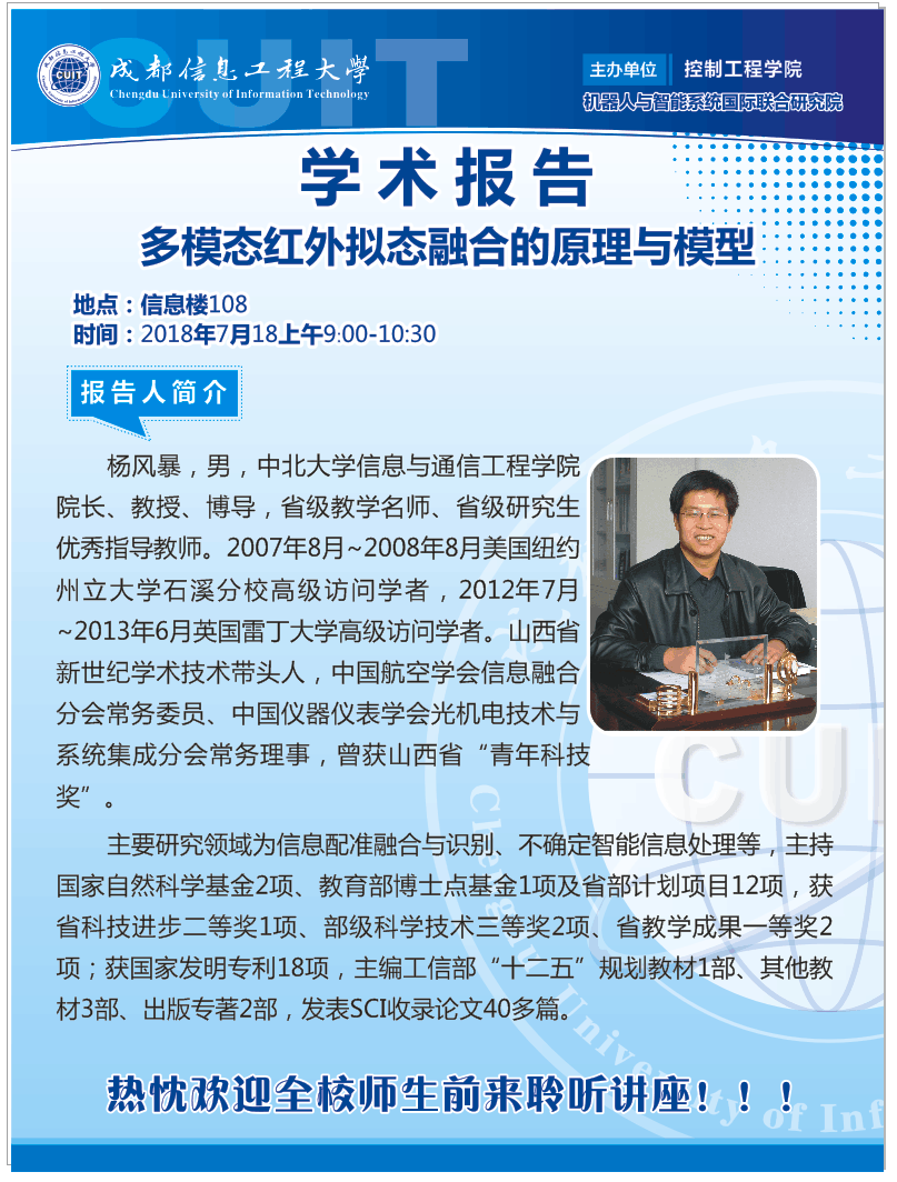 上一条:【学术预告】Computer Vision for Environent: Applications in Romtely Sensed Lidar and Imagery