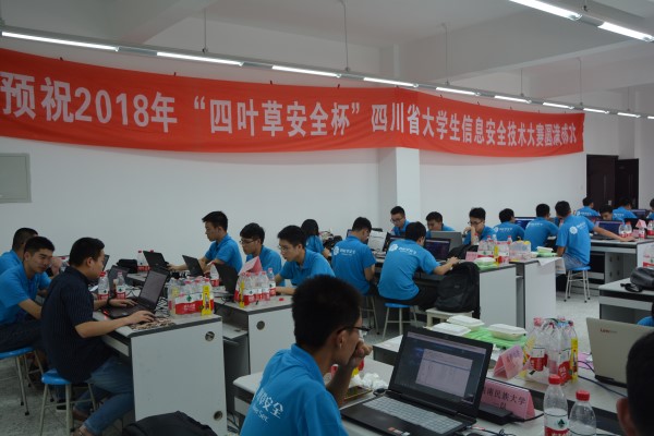 【本网讯】由四川省教育厅主办,三亿网和四川省信息安全测评中心承办,国家计算机网络应急技术处理协调中心、四川省互联网信息办公室指导、西安四叶草信息技术有限公司赞助、厦门安胜网络科技有限公司提供技术支撑的2018年“四叶草安全杯”四川省大学生信息安全技术大赛于7月28日-29日在我校成功举办。