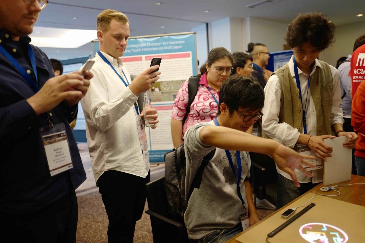 在ACM SUI 2018国际会议中,吴琴老师指导的MagicPAPER项目同多个硕士博士团队的项目中同台竞技,其精彩展示得到现场多数参会人的赞誉,得到专业评审肯定,获得了现场DEMO演示中的“最佳荣誉奖”,并受邀参与UIST 2018 Demo Track演示。
