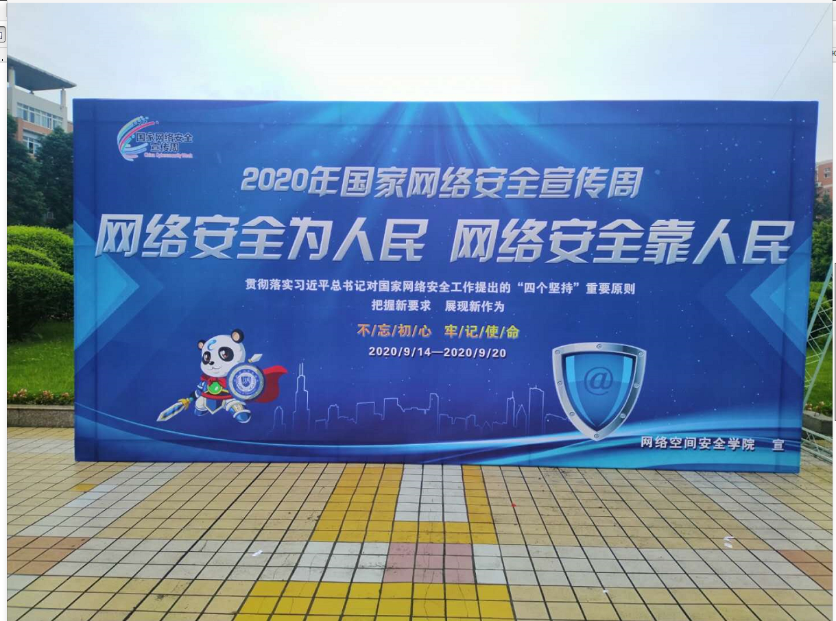 每年9月第3周为国家网络安全宣传周。2020年网络安全宣传周以“网络安全为人民,网络安全靠人民”为主题,从9月14日至20日,为期一周。网络空间安全学院将携手学校宣传部、团委、信息中心等部门联合开展网络安全专题讲座、全国大学生网络安全知识竞赛、网络安全专题展、网络安全进校园、进社区等一系列活动,以普及网络安全知识,提高网络素养,营造健康文明的网络环境,共同维护网络安全。