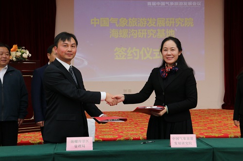 会上,还举行了“中国气象旅游发展研究院海螺沟研究基地”签约及揭牌仪式。海螺沟景区管理局党委书记、局长文明提出要将研究基地打造成一块闪亮“金字招牌”。