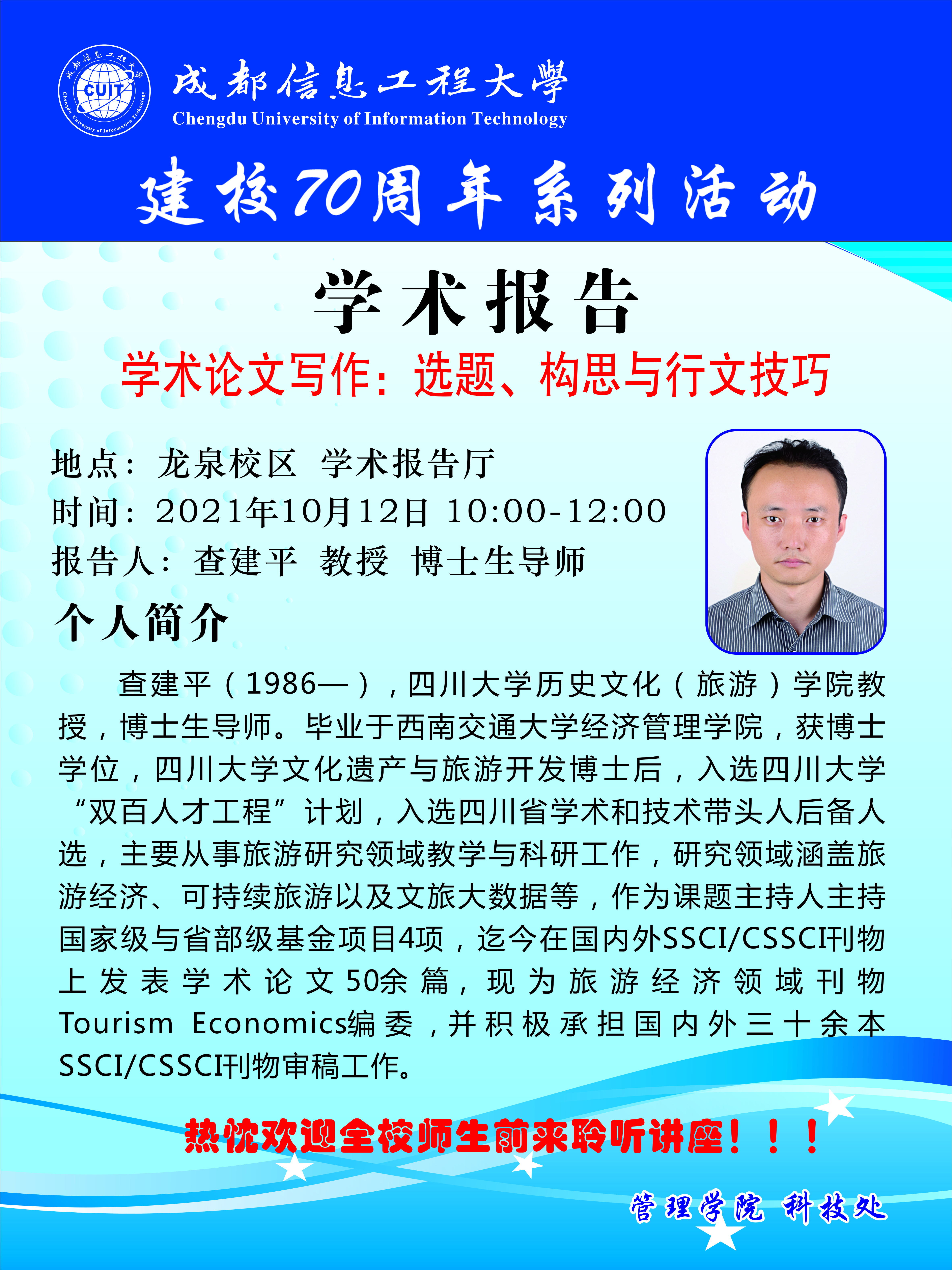 【建校70周年】查建平:学术论文写作:选题、构思与行文技巧