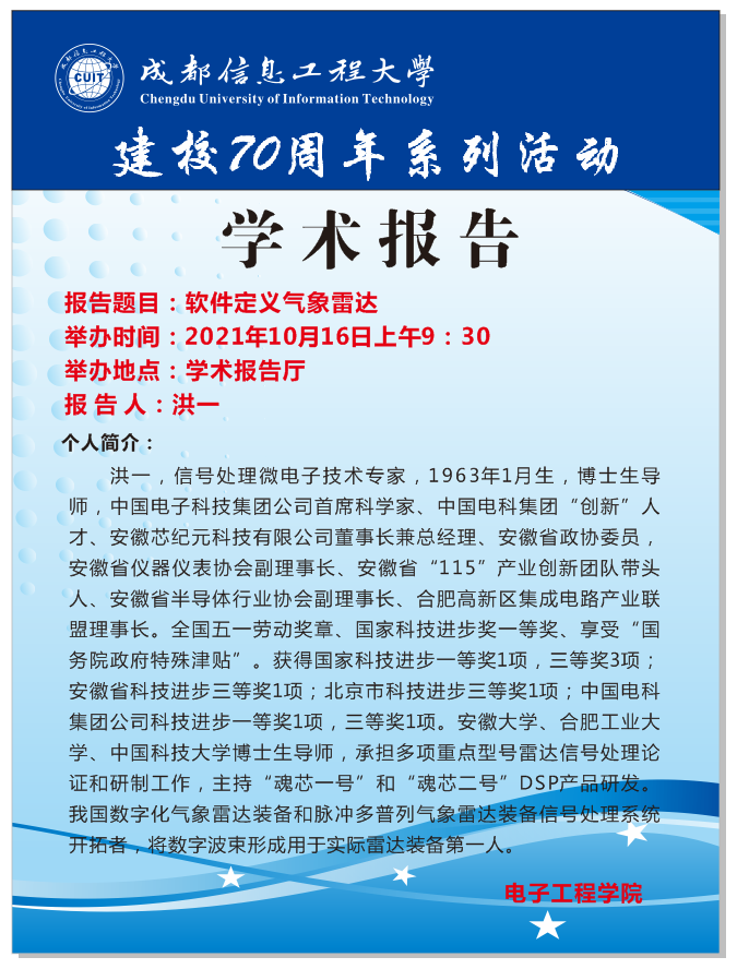 来源:电子工程学院(大气探测学院) 作者:周意超  日期:2021-10-11  审核:新闻中心  点击: